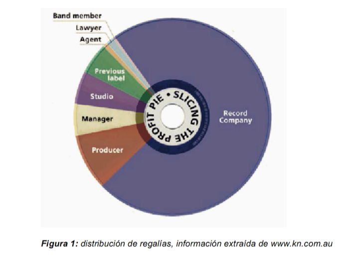 Nos podríamos explayar casi indefinidamente para sustentar esta afirmación, pero en este caso aplicaré la la vieja y útil técnica de que una imagen vale más que mil palabras. Extracto esta contundente imagen de El manual de uso para la creatividad sostenible en la era digital, en la que se muestra claramente cómo se reparte la torta de los ingresos, por concepto de regalías, de la industria ‘copyright’. Los artistas (en este caso musicales) están muy lejos, con contadas pero muy sonadas excepciones, de beneficiarse realmente en medio de esta realidad.